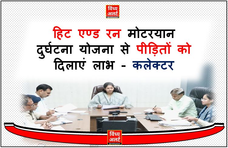 अज्ञात वाहन से सड़क दुर्घटना में घायल व्यक्ति तथा मृतक के निकटम परिजन को हिट एण्ड रन मोटरयान दुर्घटना योजना से आर्थिक मदद प्रदान की जाती है। पीड़ितों को इसका लाभ दिलाने के लिए कलेक्ट्रेट के बाणसागर सभागार में कलेक्टर एवं जिला दण्डाधिकारी प्रतिभा पाल की अध्यक्षता में बैठक आयोजित