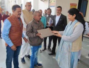 लैपटाप पाकर दिव्यांग गोरेलाल के चेहरे पर आई प्रसन्नता की मुस्कान