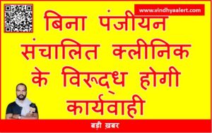 बड़ी खबर : बिना पंजीयन संचालित क्लीनिक के विरूद्ध होगी कार्यवाही